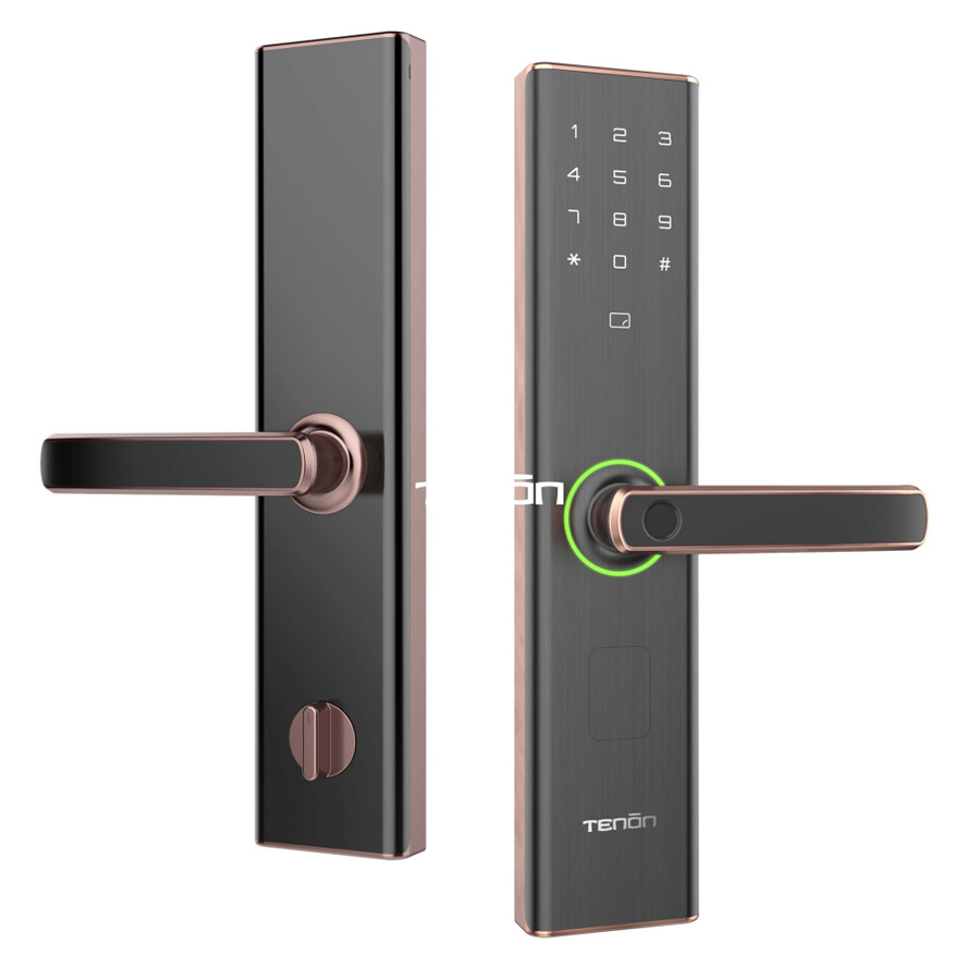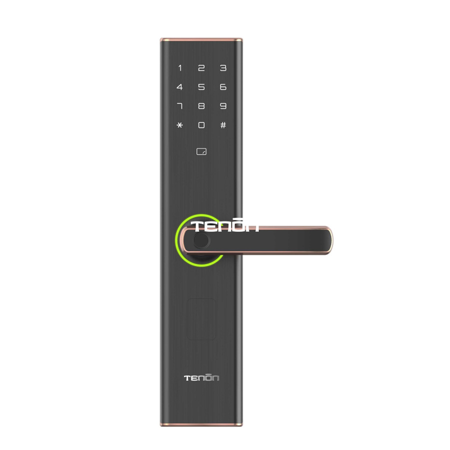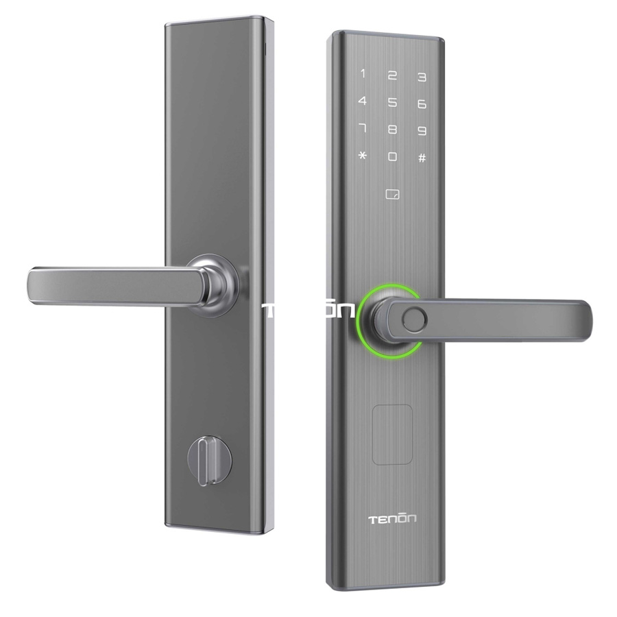 Tenon E5C — умный дверной замок с универсальной установкой и поддержкой приложения Tuya. Это современный электронный замок, который сочетает надежные технологии безопасности, удобное управление и стильный минималистичный дизайн. Он легко устанавливается на деревянные, металлические и даже стеклянные двери, что делает его универсальным решением для дома, офиса или коммерческих помещений.