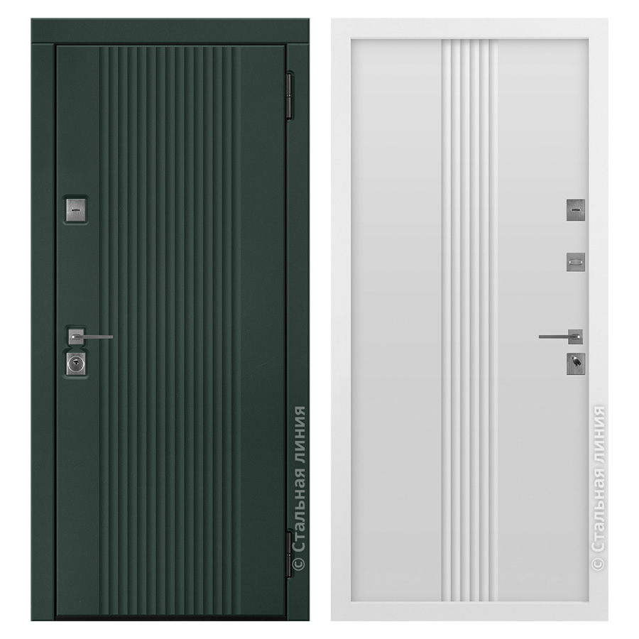 Прочная металлоконструкция с усиливающими изгибами по торцу обеспечивает высокий уровень безопасности и комфорта. Замковая комбинация формируется из замков разных типов и уровней секретности, защищая входную дверь от несанкционированного проникновения.